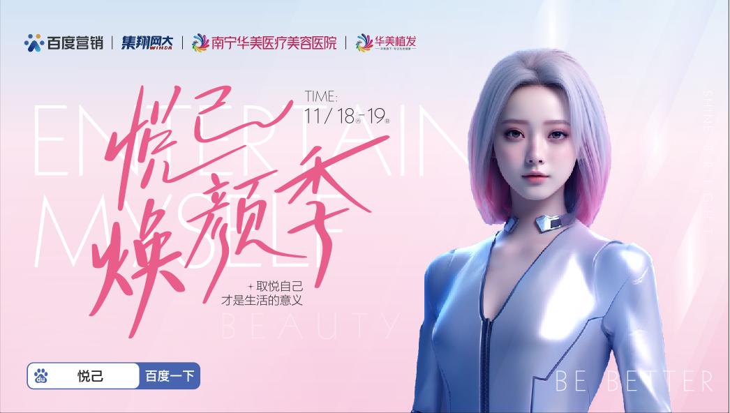 2023年11月18日-19日,集翔網大百度營銷(廣西)服務中心(以下簡稱集翔網大)攜手南寧華美醫療美容醫院、華美植發聯合舉辦“悅己·煥顏季”系列活動。通過線上+線下結合的形式和新穎有趣的玩法,為廣大消費者傳遞美麗與健康的生活理念,助力企業精準撬動“悅己”經濟。
