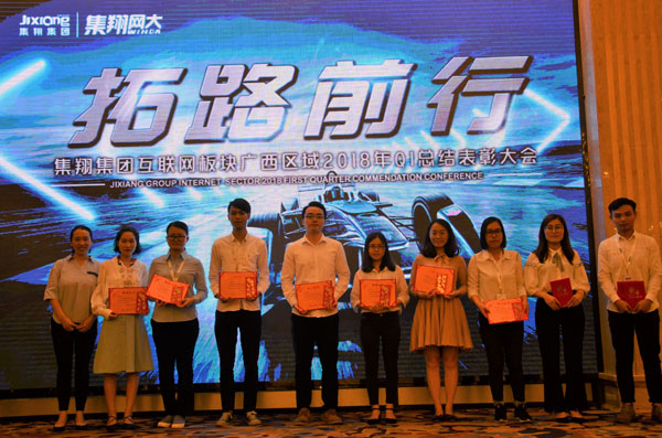 2018年4月13日下午,廣西集翔網大信息科技有限公司迎來了集翔集團互聯網板塊廣西區域2018年Q1季度的總結表彰大會。