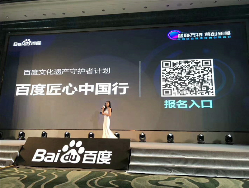 隨后,主持人為在座企業家、媒體朋友們展示了以守衛非物質文化遺產的“百度匠心中國行”行動,并挖掘了多項民間“非遺”項目,繼續傳承傳統文化和藝術魅力。近兩年,百度陸續發起了“發現身邊的好手藝人”行動和“中國匠魂”行動,傳播精益求精、追求極致的敬業態度。我們希望能把他們的故事傳揚下去,讓匠心精神得以傳承,這些行動皆收獲了業界的廣泛好評。
